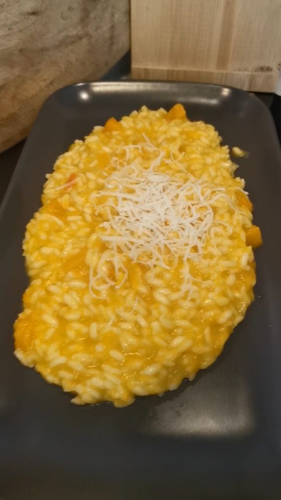O risoto de abóbora cremoso de cor quente e envolvente, onde a doçura da abóbora se funde com o sabor do parmesão.