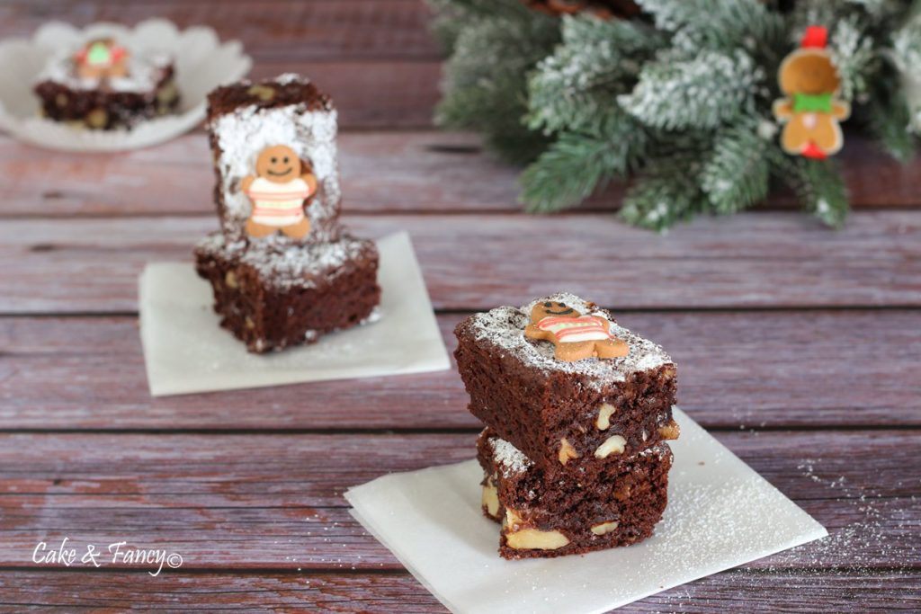 Os brownies de Natal são deliciosos doces de chocolate, levemente crocantes por fora e macios por dentro, derretendo na boca. Uma base de chocolate amargo, cacau e manteiga, aromatizada com gengibre, canela e noz-moscada. Uma combinação de sabores e aromas realmente única e deliciosa; as decorações são feitas com divertidos homenzinhos de biscoito de gengibre. Com esses deliciosos doces, o sucesso é garantido, prepare-os também para as festas. E não perca a vídeo receita, você verá que será rapidinho!