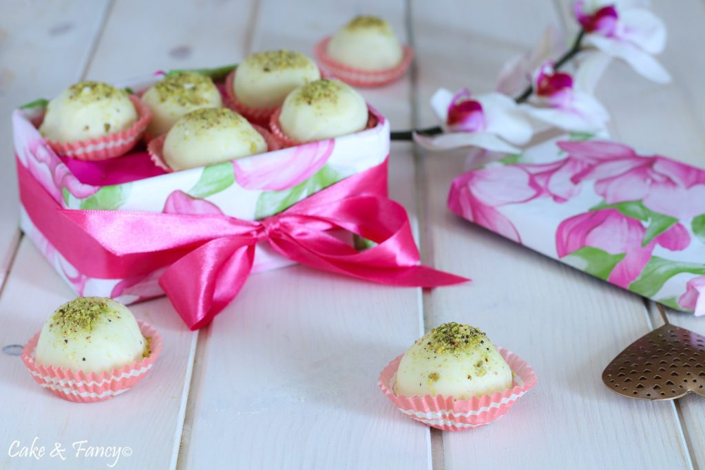 As pralinés de chocolate e pistache mantêm-se por 2 semanas à temperatura ambiente. Se quiser, você pode variar a cobertura com chocolate amargo e em vez de pistache, alternar com granulado de avelãs.