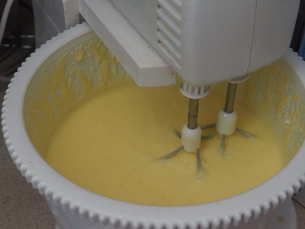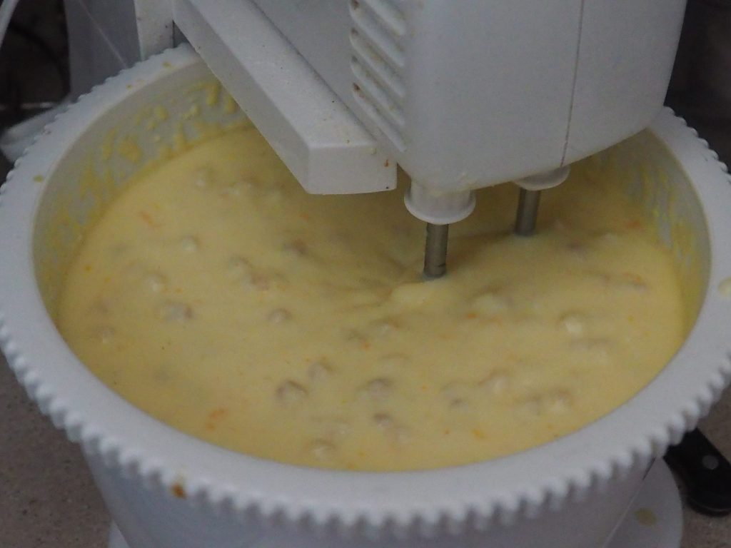 Adicione 300 g de açúcar, 7 ovos, 1 saquinho de vanilina, 2 colheres de flores de laranjeira.