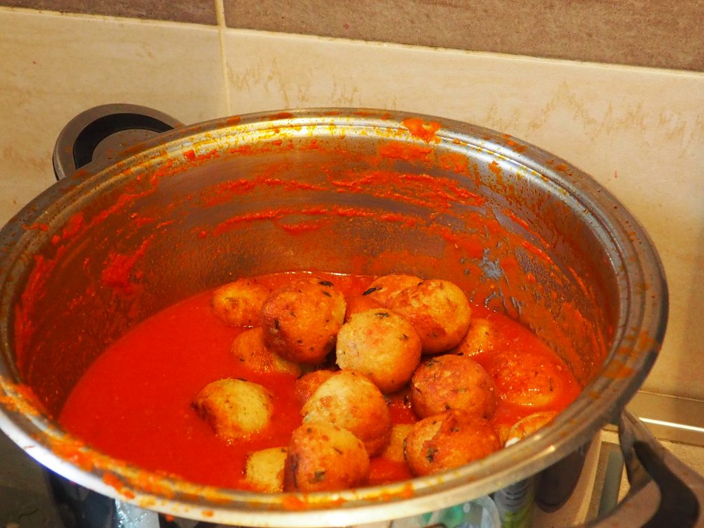 Agora coloque as almôndegas dentro e cozinhe por mais 20 minutos.
