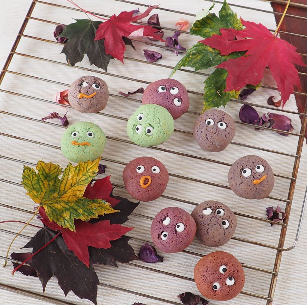 Assim que saírem do forno, adicione os olhos, pressionando levemente a superfície para encaixá-los no biscoito.