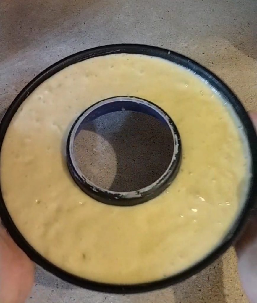 Uma vez que os ingredientes estejam bem misturados, despeje a massa na forma de bolo com diâmetro de 25 cm.