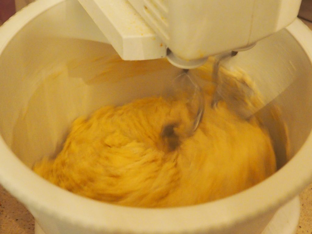 Adicione então o azeite em fio, o sal e continue misturando até que a massa esteja ligada (cerca de 10 minutos).