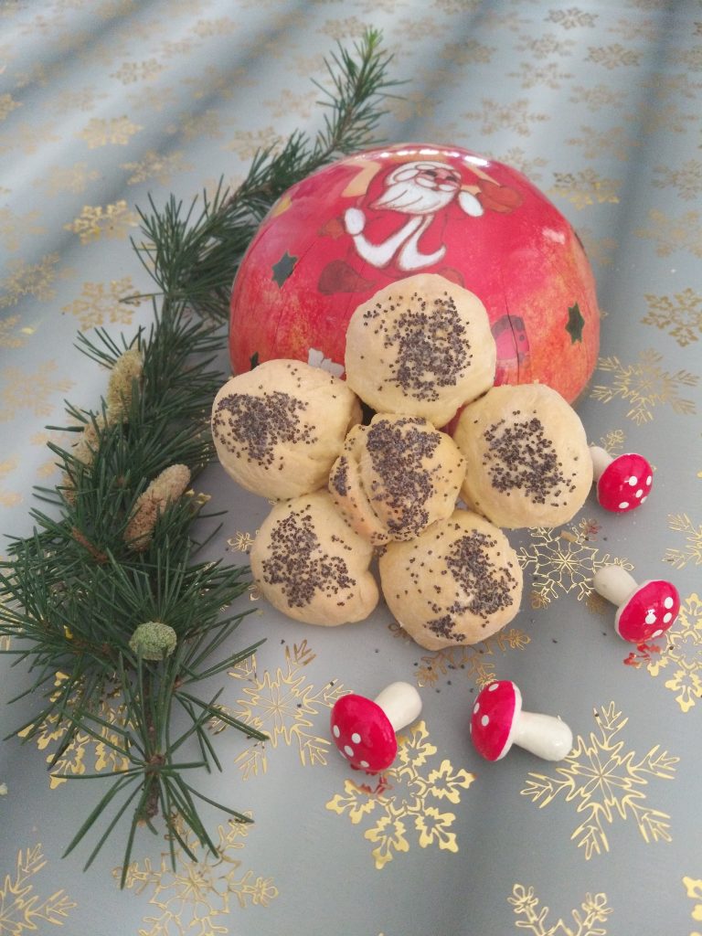 • Pegue 100 gr de massa e divida em 5 bolinhas do mesmo tamanho. Coloque um pouco de sementes de papoula na palma da mão e pressione a parte superior da bolinha tentando fazer com que grudem bem. Forme uma flor e deixe crescer novamente por cerca de meia hora. Coloque no forno a 180° por cerca de 10/15 minutos.