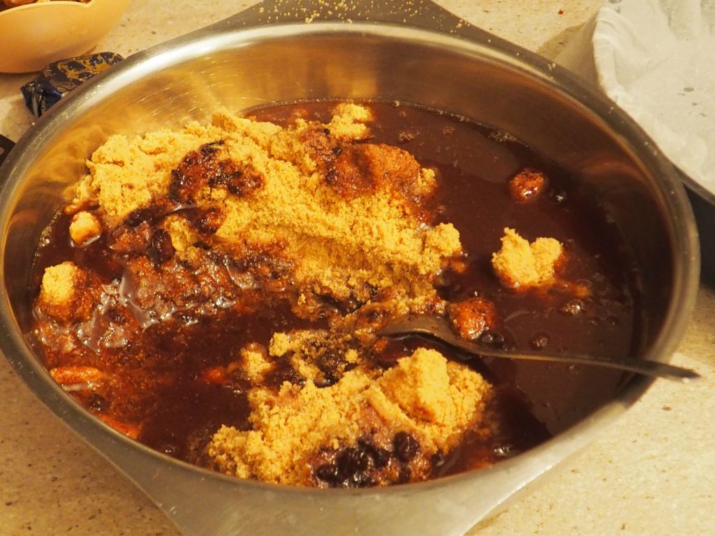 • Derreta a manteiga e o chocolate no micro-ondas (serão necessários apenas alguns segundos) e despeje-os na tigela junto com os biscoitos triturados. Misture bem com uma colher até obter uma mistura homogênea.