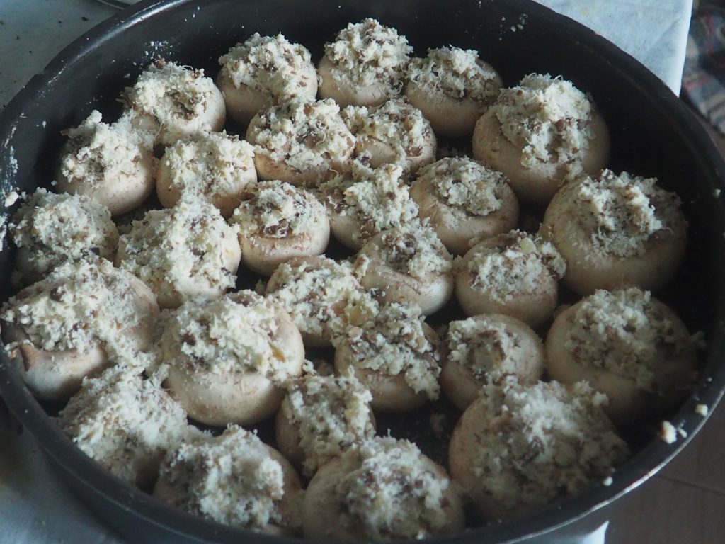 Recomendo escolher cogumelos que sejam um pouco maiores, para melhor equilibrar o sabor com o recheio.