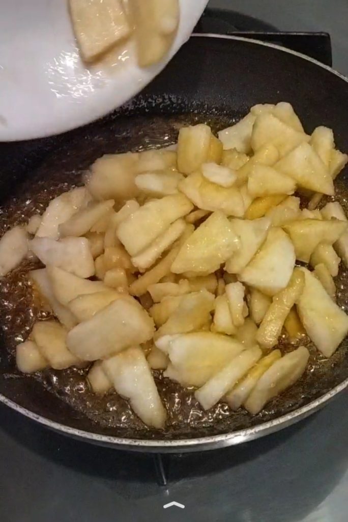 Agora despeje as pêras. Deixe caramelizar por alguns minutos.