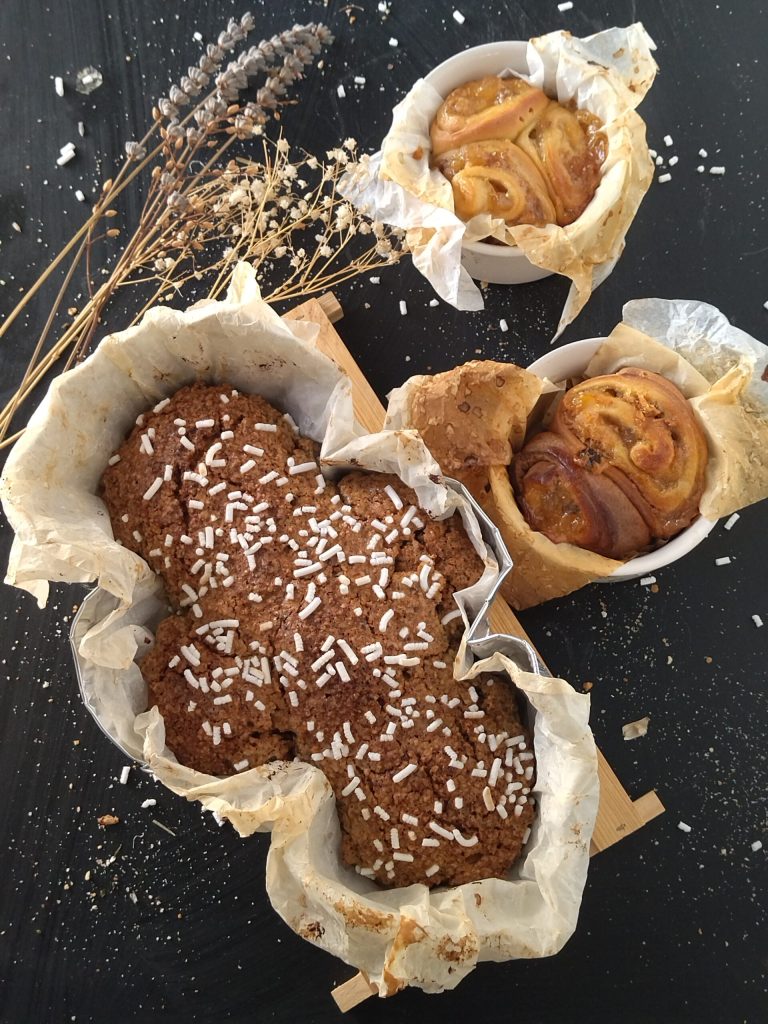 Há anos que queria preparar uma colomba, mas para a clássica é preciso tempo e grande habilidade na preparação dos fermentados. Adoro este setor da cozinha, estou me aventurando também com o fermento natural, mas ainda não me sentia pronta para enfrentar esta empreitada. Optei por este pandolce em forma de colomba que me satisfez plenamente. Para torná-lo mais saboroso, acrescentei compota de pêra e pêras caramelizadas. Não tinha o molde apropriado, então fiz com um molde de alumínio retangular.