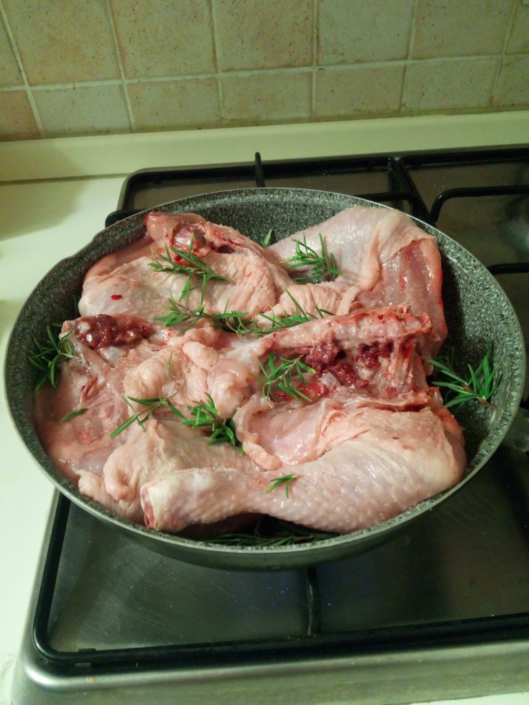 - 4 coxas de frango (e sobrecoxas, cerca de 1,5 kg)