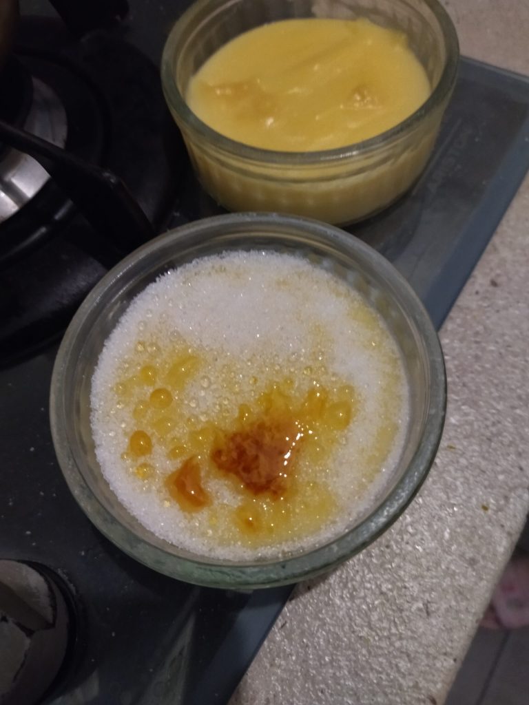 Aqui está uma sobremesa muito fácil e rápida de preparar, o Creme Catalão. Para caramelizar o açúcar na superfície, coloque os recipientes no forno com o grill ligado por alguns segundos, mas fique de olho para evitar que queime. Ou você pode usar um maçarico pequeno, que fará bem o seu trabalho.