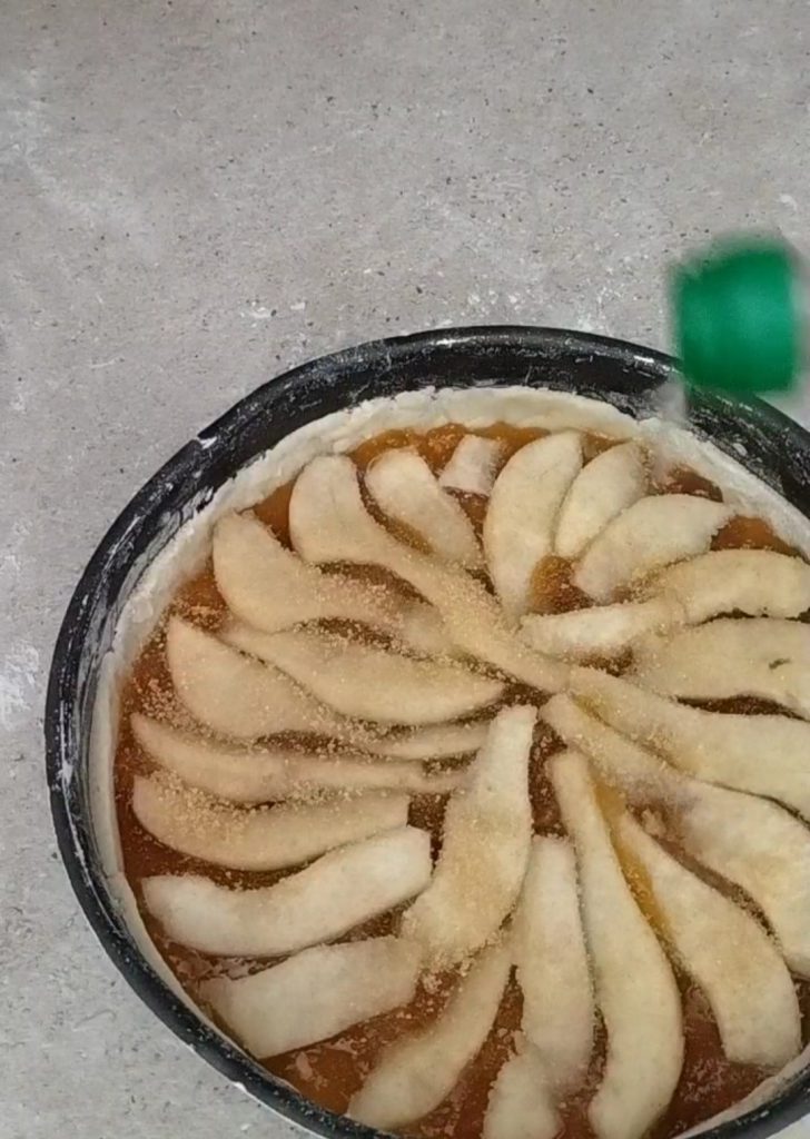 Coloque a outra camada de massa sobre as peras.