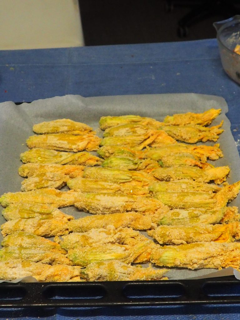 Posicione as flores de abóbora na assadeira coberta com papel manteiga.