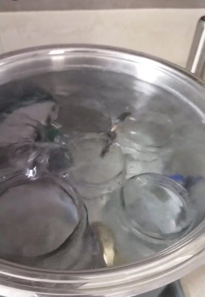 Em resumo, você deve esterilizar os frascos e as tampas em uma panela cobrindo-os completamente com água, assim que ferver, deixe por pelo menos 5-10 minutos. Retire-os da panela com uma pinça, para secá-los rapidamente, coloque-os de cabeça para baixo nas prateleiras da lava-louças, sem fechar a porta. Ou escorra-os sobre um pano e coloque-os no forno a cerca de 80°C por alguns minutos para secá-los completamente.