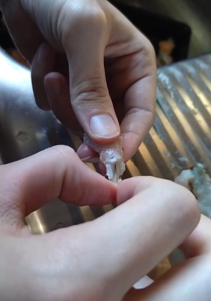 • Enquanto espera o cozimento da massa, retire as cabeças dos lagostins da frigideira.