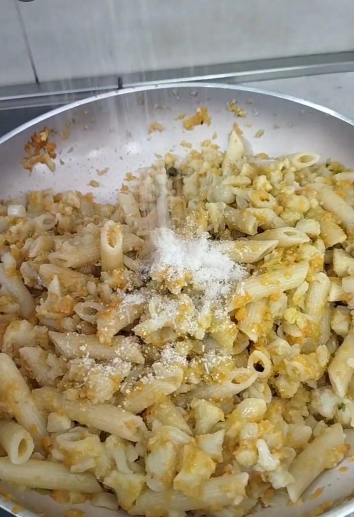Misture bem e tempere com queijo parmesão ralado e pimenta vermelha em pó.