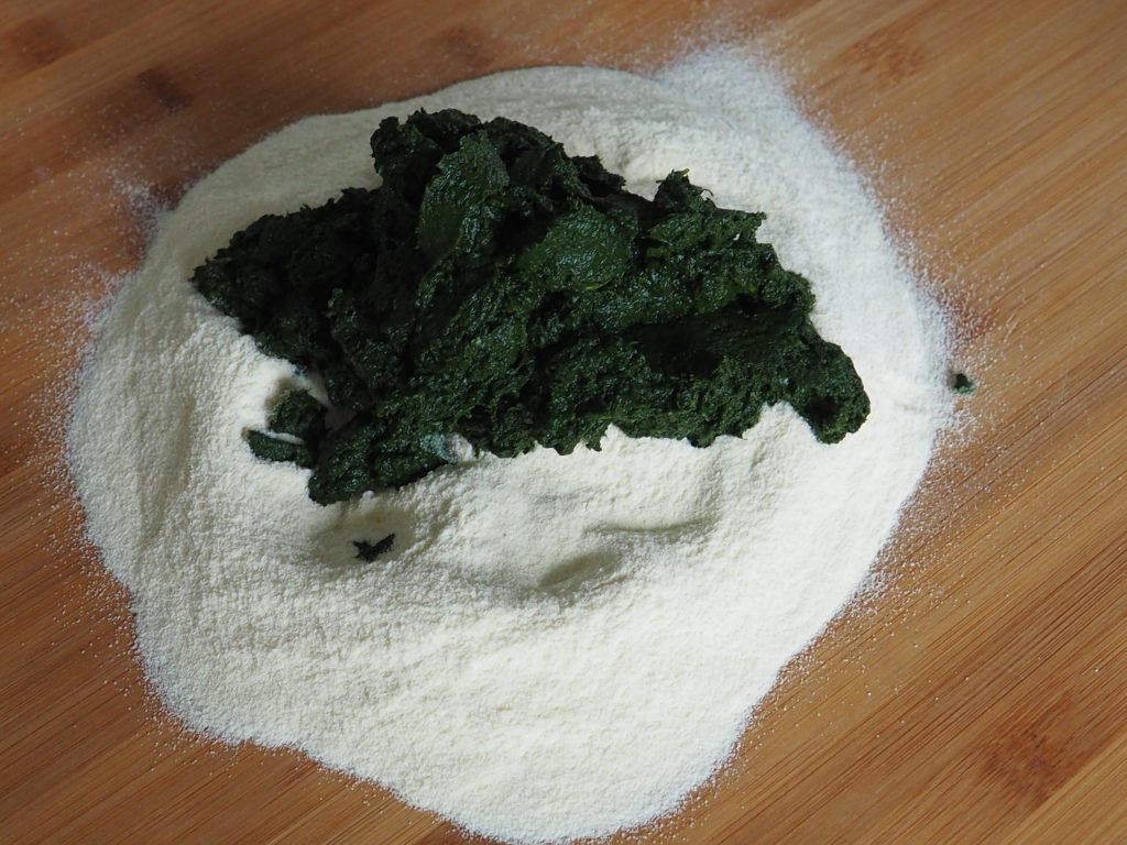 Nesse tipo de receita, não é fácil indicar as quantidades exatas, basta que o espinafre seja um pouco mais ou um pouco menos aquoso e a quantidade de farinha pode variar. Lembre-se que a massa deve ser macia, mas trabalhável, não mais muito pegajosa. Sempre se ajude com a farinha para evitar que grude na superfície de trabalho.