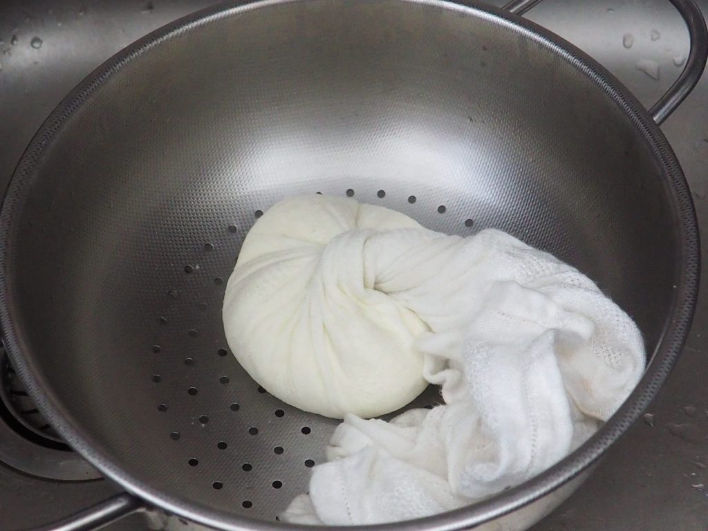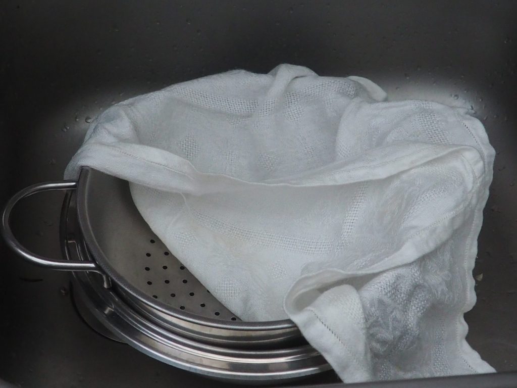 Prepare um escorredor com um pano ou guardanapo de trama não muito fina.