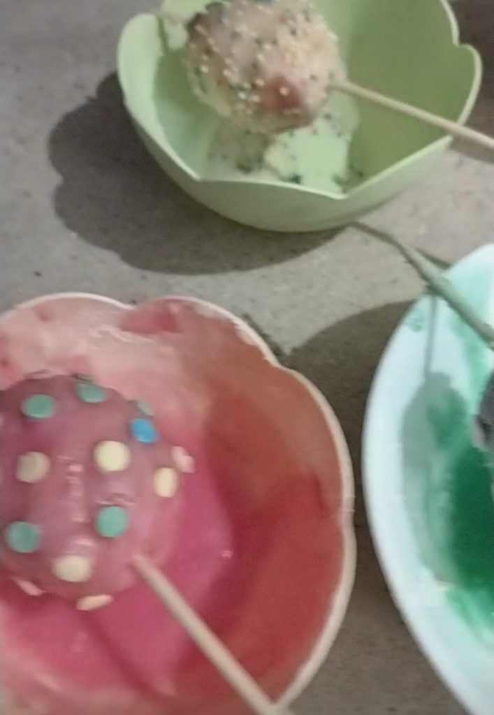 Na segunda tigelinha, coloque o corante verde e siga o mesmo procedimento da anterior.