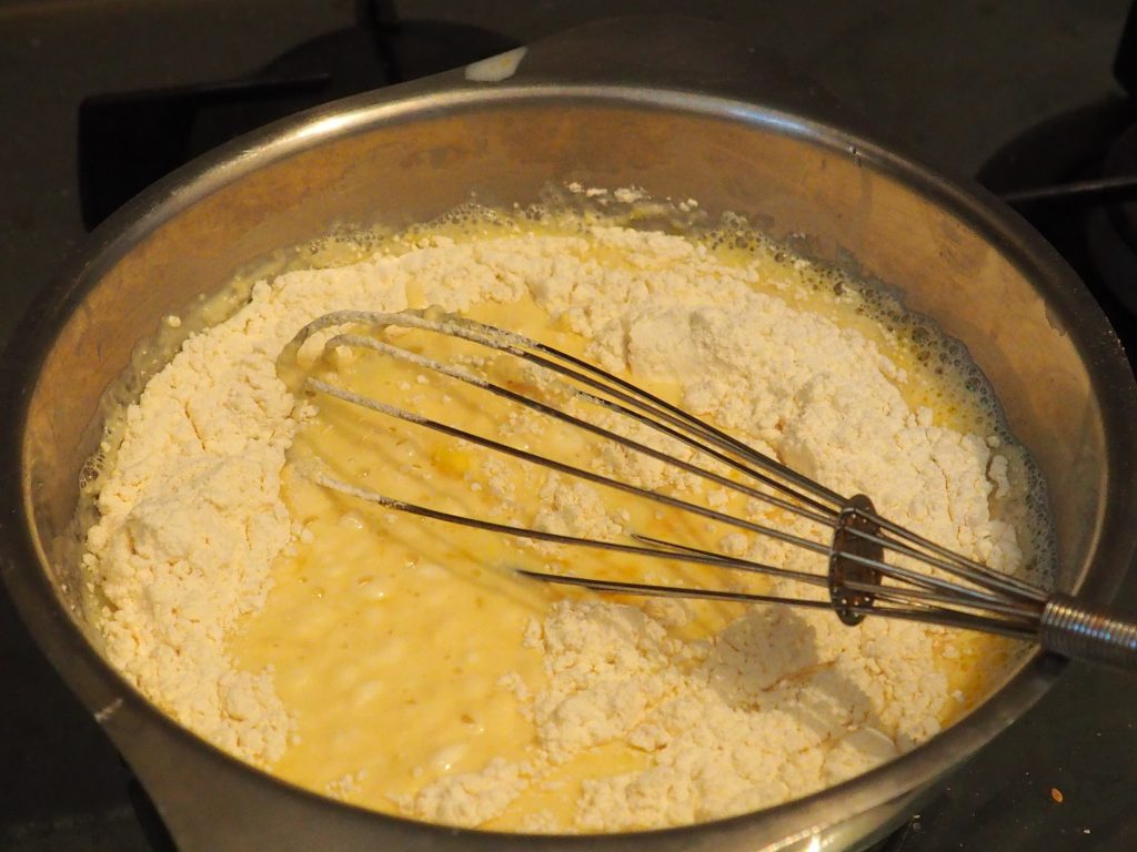 Incorpore à mistura de farinha e ovos.