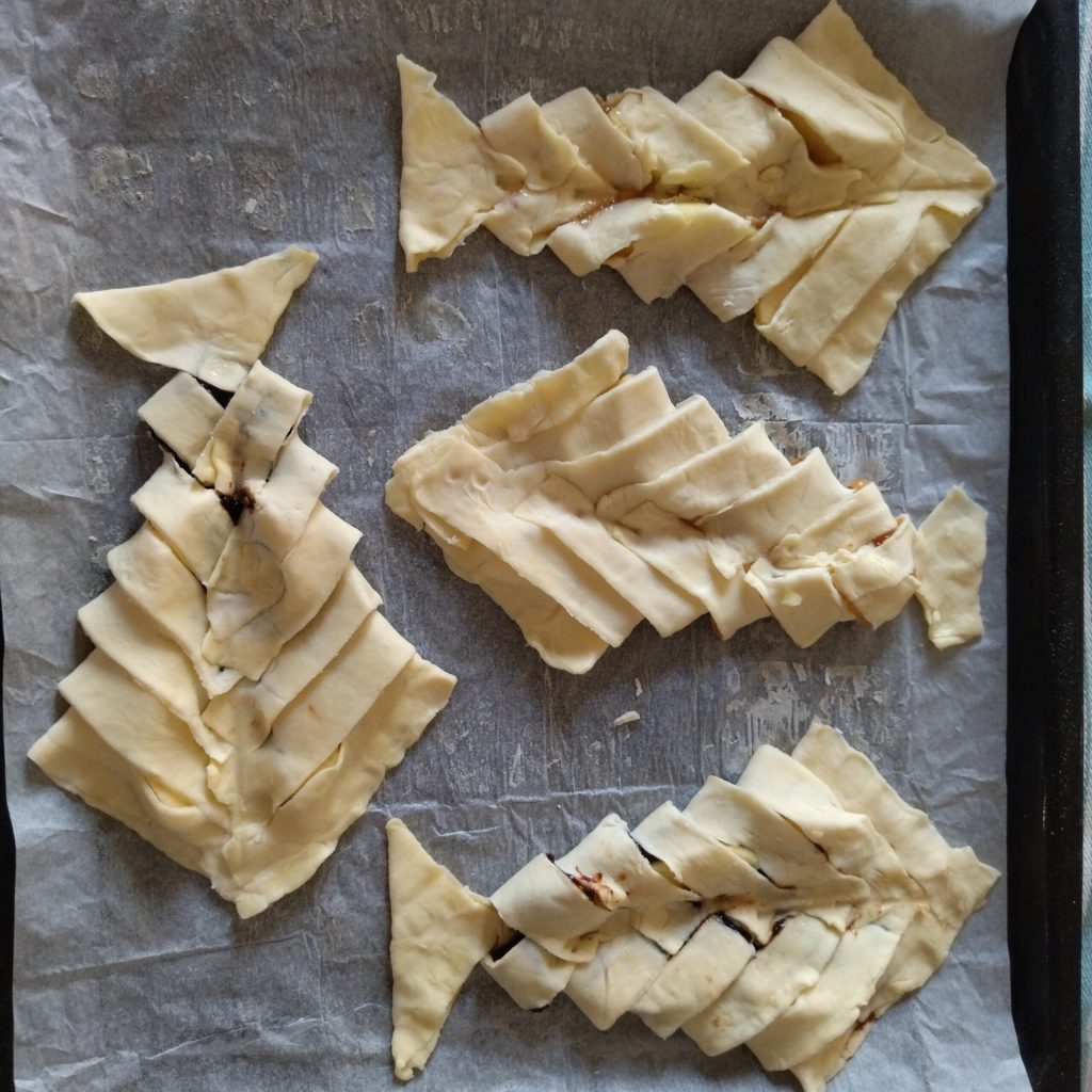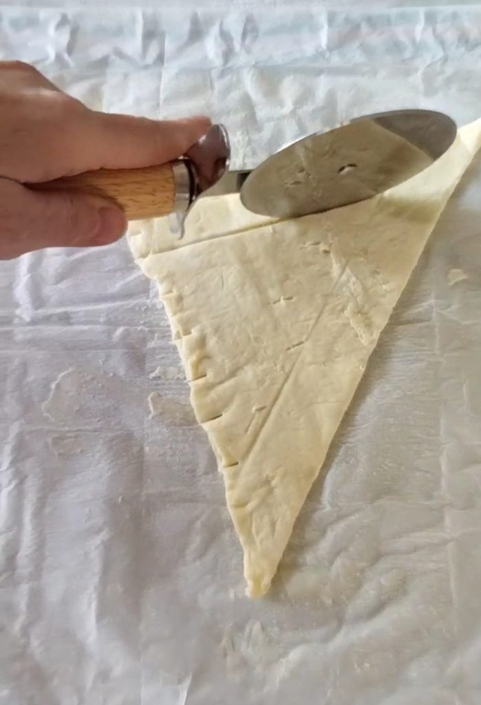 • Feche bem pressionando a massa folhada ao longo da diagonal com um palito.