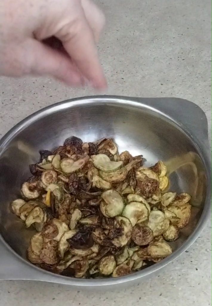 Sirva, adicione um pouco das abobrinhas fritas temperadas.