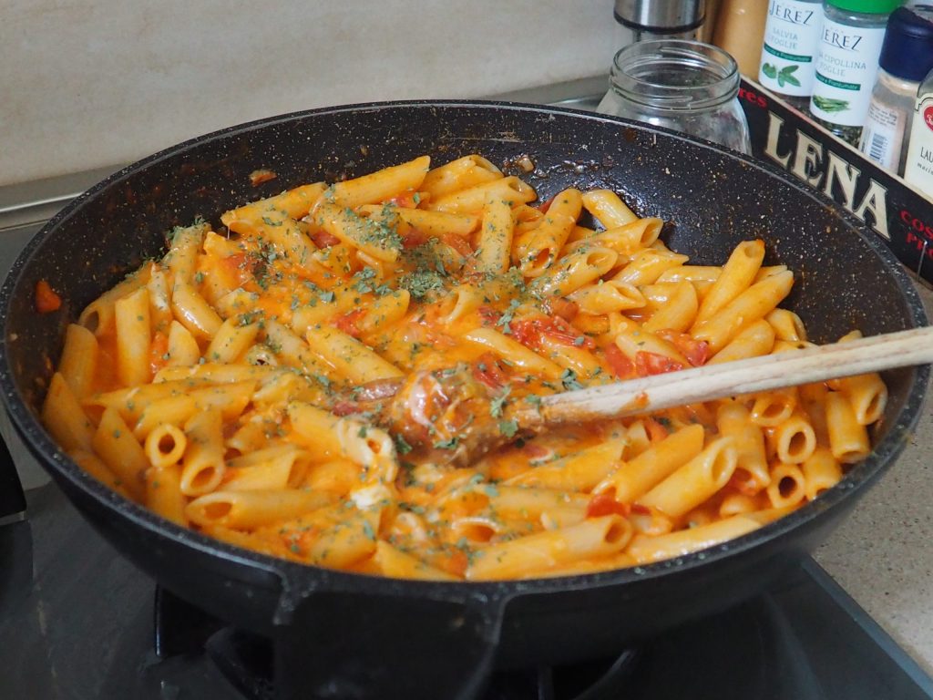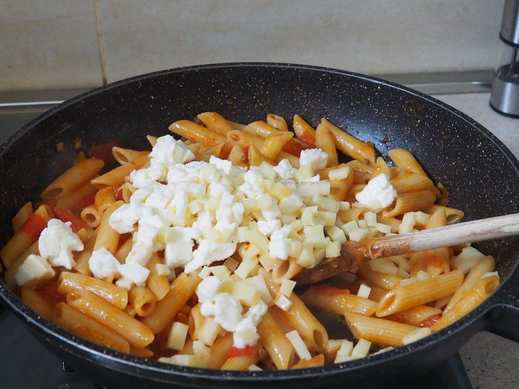 Penne derretendo com tomate e mussarela (sabor pizza)