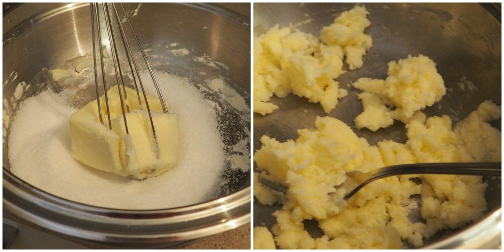 • Amacie a manteiga fora da geladeira e misture com o açúcar com um garfo, até obter um creme macio.