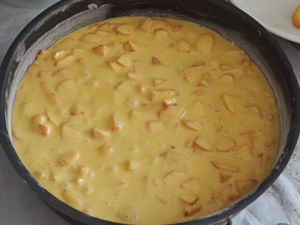Os 200 g restantes de maçãs, corte em fatias finas para cobrir a forma.