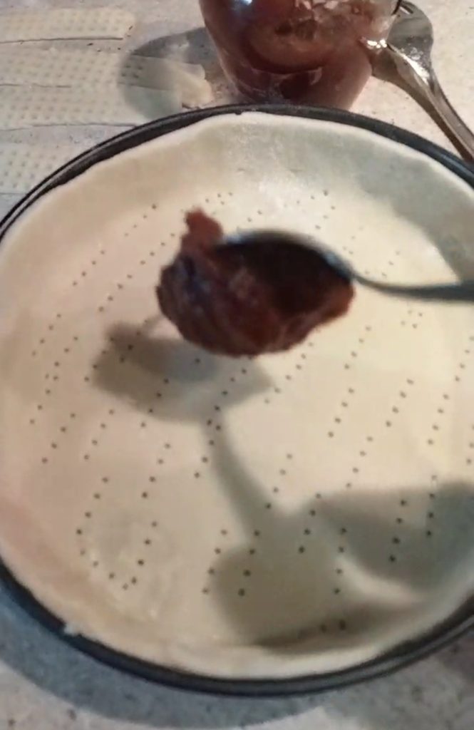 Agora unte e enfarinhe a forma e cubra-a com a massa estendida.