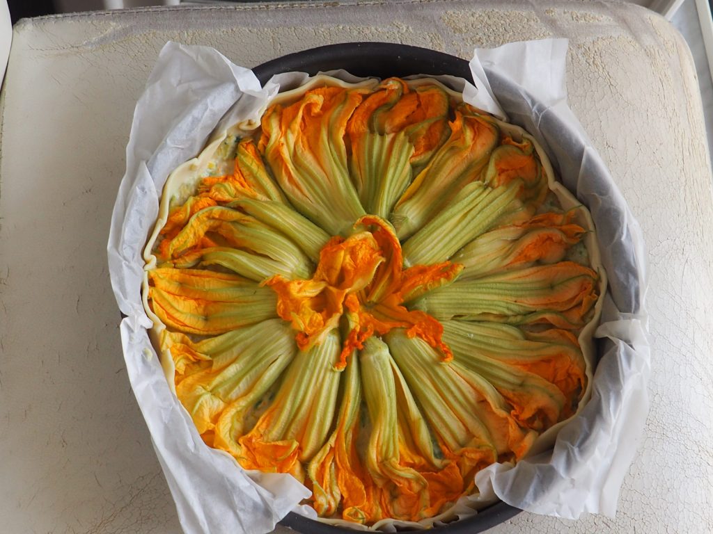 A Torta salgada de flores de abóbora e abobrinha é realmente saborosa de se degustar e bonita de se ver: traz o sol à mesa e as cores da alegria. Para uma versão mais saborosa, tente adicionar também 200g de presunto cozido, nós gostamos muito.