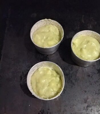 • Despeje a mistura nas forminhas, enchendo 3/4 delas, coloque-as na assadeira, adicione um pouco de água no fundo. Asse a 180°C por cerca de 50 minutos. Faça sempre o teste do palito para verificar se estão cozidas.