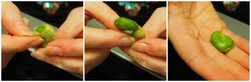 Geralmente eu uso favas congeladas, dessa forma é muito mais fácil remover a pele externa uma vez que descongelam.