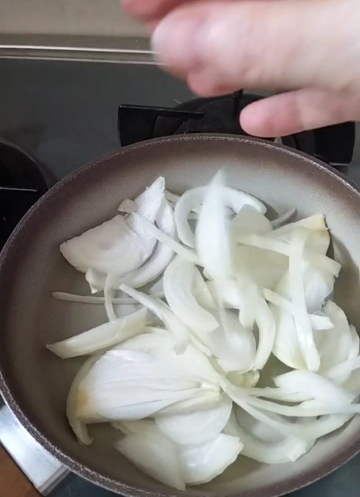 Enquanto isso, prepare a cebola caramelizada, cortando em fatias os restantes 200 g de cebola, coloque em uma panela, adicione duas colheres de sopa de açúcar e duas colheres de sopa de água. Cozinhe e caramelize. Reserve.