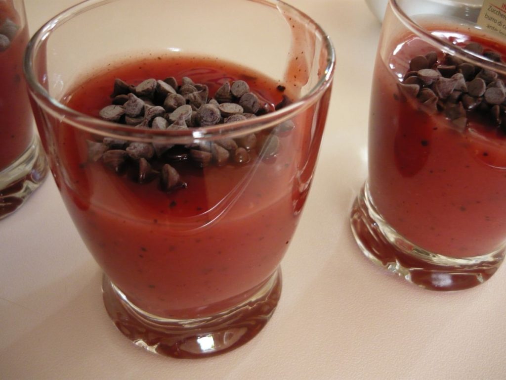 Após este tempo, retiramos do fogo e deixamos esfriar em outro recipiente. Quando estiver suficientemente frio, adicione as gotas de chocolate e despejamos tudo em tigelas. Deixe o gelo de melancia esfriar na geladeira pelo tempo necessário até que adquira a consistência de um pudim e, finalmente, decore com uma pitada de canela, algumas gotas de chocolate e as amêndoas trituradas previamente tostadas em uma frigideira, sirva com colher.