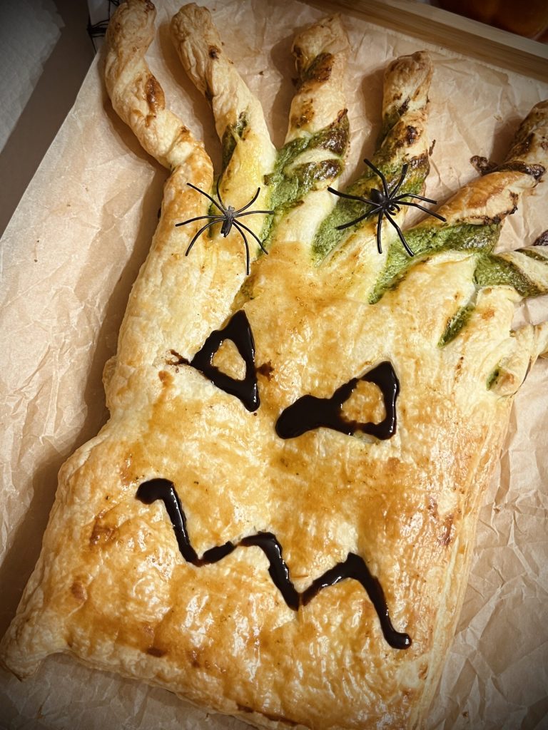Perfeito como entrada ou lanche salgado, é ideal para montar o buffet de Halloween junto com muffins, biscoitos e abóboras com geleia.