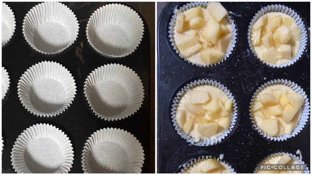 Nossos Muffin com iogurte e maçãs estão prontos.