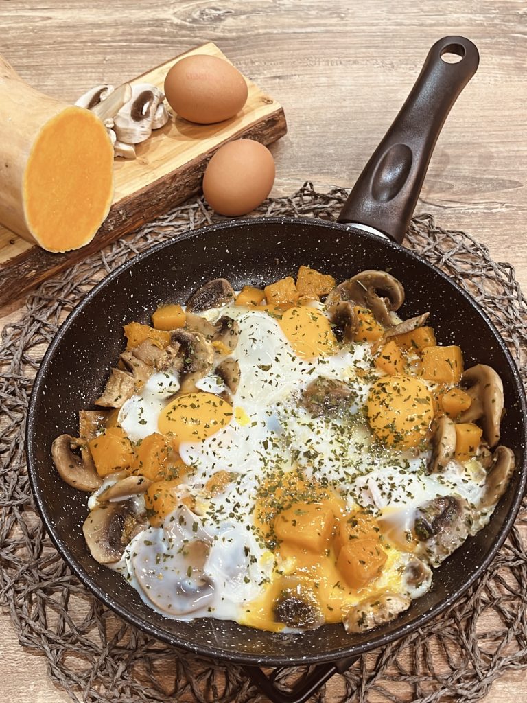 Um prato simples, genuíno e cheio de sabor: os ovos na frigideira com abóbora e cogumelos são preparados em poucos minutos e trazem à mesa todo o aroma da estação. Ideais para um jantar rápido ou um almoço rústico, com poucos ingredientes mas muito sabor.