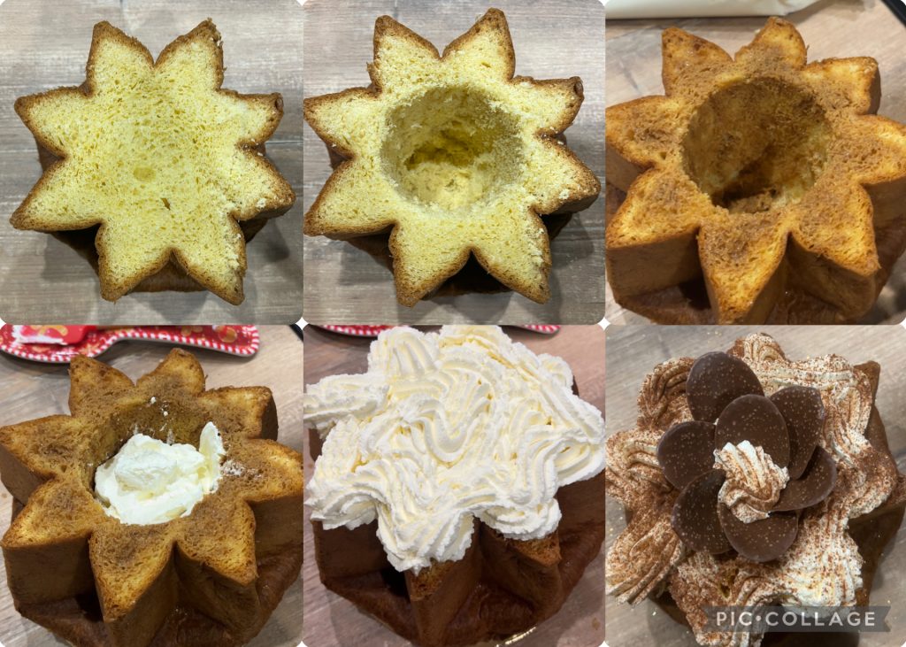 Cave delicadamente o interior com uma faca, deixando cerca de 1,5-2 cm de borda e tomando cuidado para não quebrar a base.Umedeça levemente o interior e a superfície do pandoro com o café, sem exagerar.