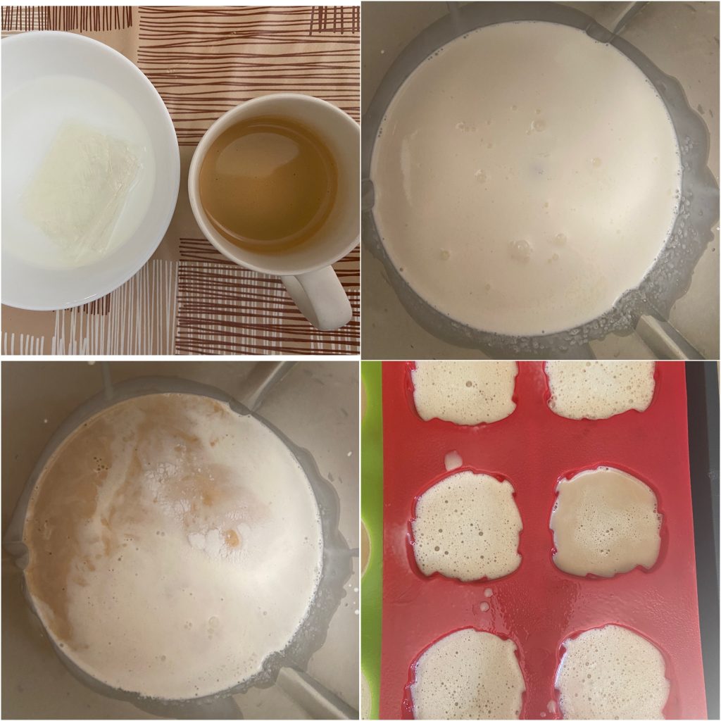 Despejamos a panna cotta nos moldes de silicone e colocamos na geladeira para firmar por 4/5 horas.