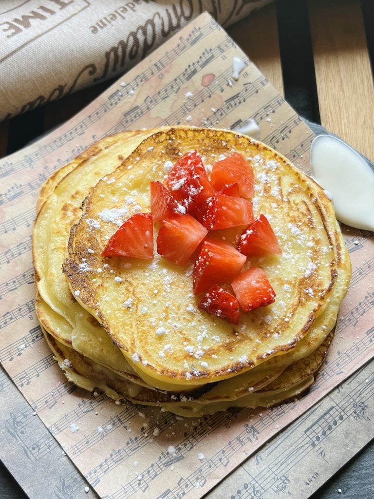 Ideais para começar o dia com sabor, mas sem excessos, essas panquecas são feitas com poucos ingredientes e são naturalmente doces graças ao iogurte e à fruta. Sem açúcares adicionados, apenas simplicidade e sabor.
