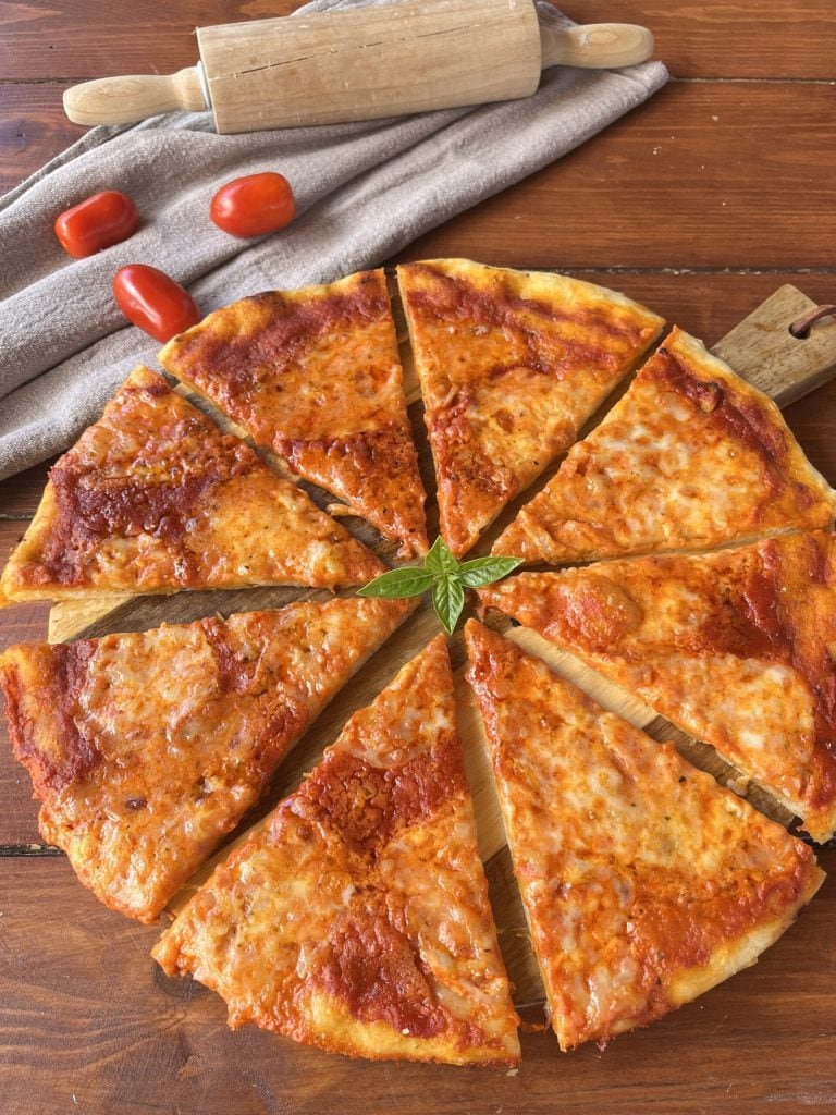 Retiramos do forno, deixamos esfriar por alguns minutos… e a pizza na assadeira está pronta! Macia, perfumada e irresistível, para servir imediatamente.