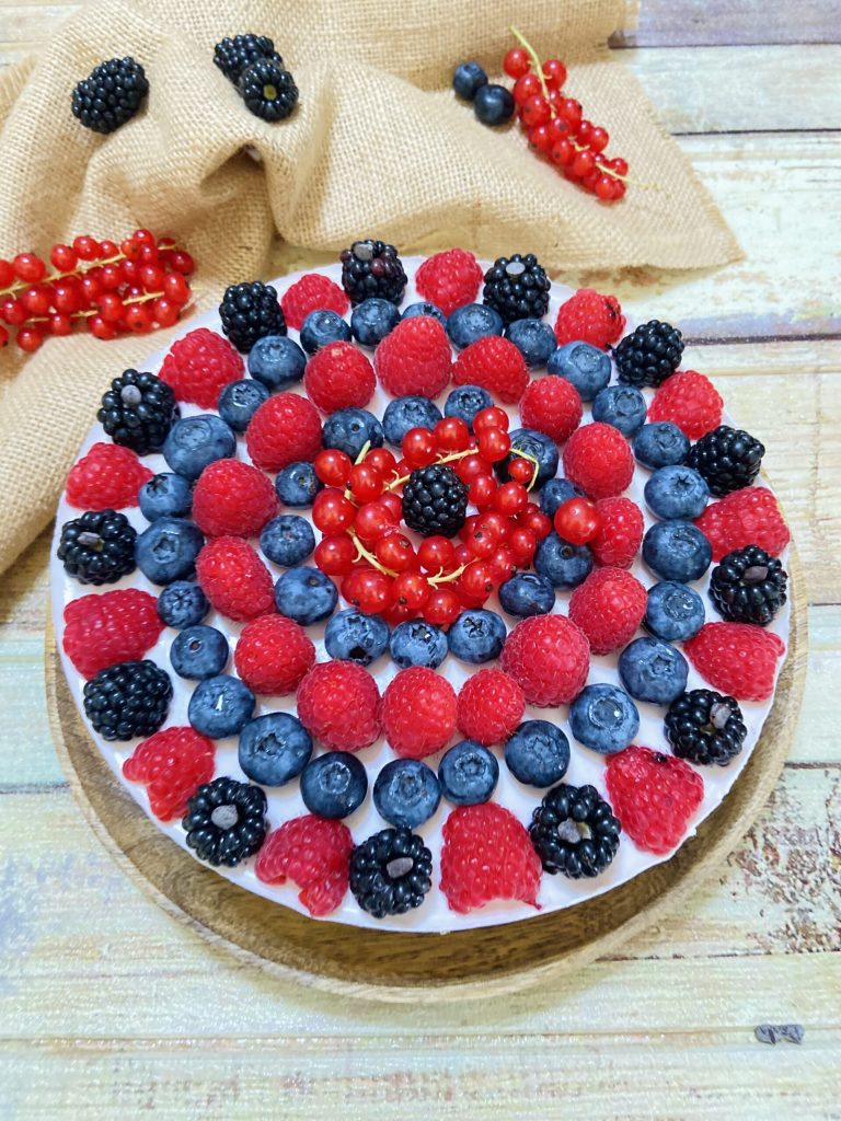 Torta gelada de frutas vermelhas. Receita sem cozimento.