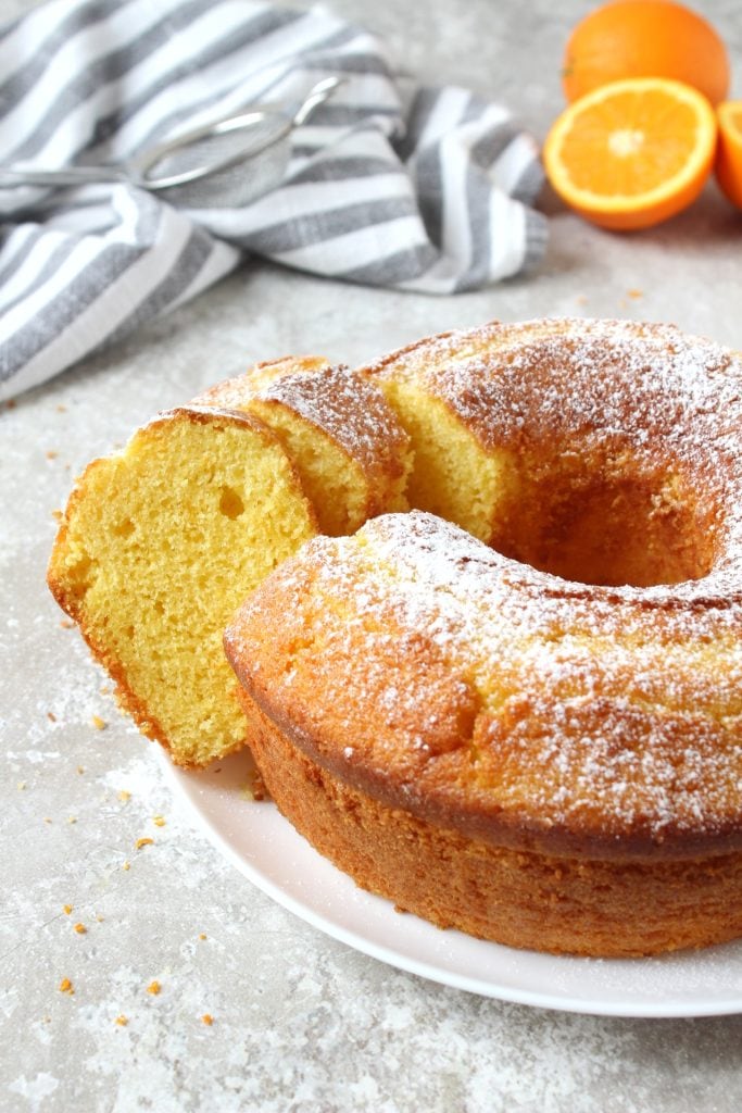 Você pode substituir o suco de laranja simplesmente por água; obviamente o aroma da laranja será fornecido apenas pelas raspas, mas você obterá um bolo muito fofo que pode personalizar como preferir.
