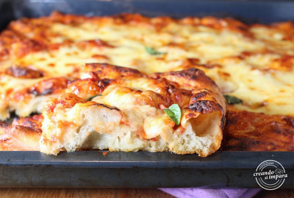 • Retiramos da geladeira e deixamos voltar à temperatura ambiente. Dividimos a massa em duas ou mais partes, dependendo do tamanho das suas assadeiras. Untamos as assadeiras e estendemos a massa com a ajuda de azeite e dos dedos. Deixamos descansar mais 20 minutos e terminamos de estender sempre com os dedos. Assamos, após espalhar o molho de tomate, a 250ºC por 15-20 minutos na parte inferior do forno. Adicionamos a mussarela e terminamos de assar, elevando a assadeira para a parte média do forno. Aromatizamos com manjericão e servimos.