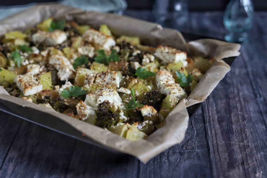 Por que brócolis, couves de Bruxelas e feta com gergelim assado?