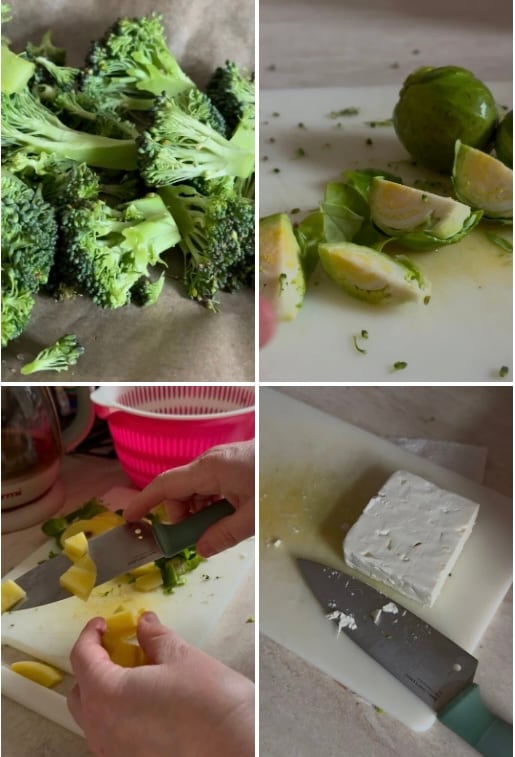 Para preparar esta delícia, você precisará de poucos e simples ingredientes: brócolis, couves de Bruxelas, batatas, feta, gergelim, azeite extra virgem, alho, sal e pimenta, e em poucos passos terá um prato saudável e saboroso que agradará a todos, inclusive aos pequenos. A preparação é fácil e rápida: lave os vegetais, corte-os em pedaços, coloque tudo na assadeira, tempere com azeite, sal e pimenta, adicione a feta, polvilhe com gergelim e leve ao forno.