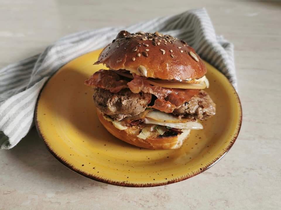 Mini hambúrguer com bacon e batatas, para fazer quando bate aquela vontade de um sanduíche, perfeito e de sabor único. Tudo feito em casa, desde o pão (bun), a carne e o recheio, assim é saudável e genuíno, único no seu gênero. Rápido e saboroso é um coringa da boa cozinha, eu gosto muito de carne, e esta é uma alternativa ao bife de sempre. No lugar das batatas, você pode ficar no clássico e usar cebolas caramelizadas, ainda assim será uma delícia. É um desafio criar sempre novas combinações, mas acreditem, é uma pesquisa muito agradável. Esta receita foi criada para um concurso, e estou realmente satisfeita, espero que os juízes também gostem.