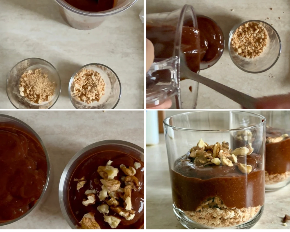 Resfrie: Prepare uma base com os amaretti restantes picados (ou biscoitos veganos) e coloque-os no fundo do copo. Despeje a mousse e coloque na geladeira por pelo menos 2-3 horas. O tempo de repouso é essencial para a polpa de caqui se solidificar naturalmente.
