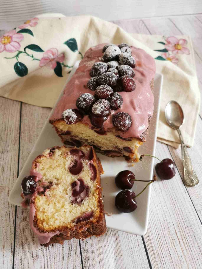 O plumcake de cereja com chocolate ruby é uma sobremesa de fruta realmente deliciosa.